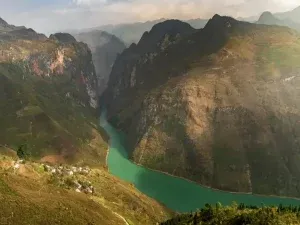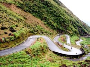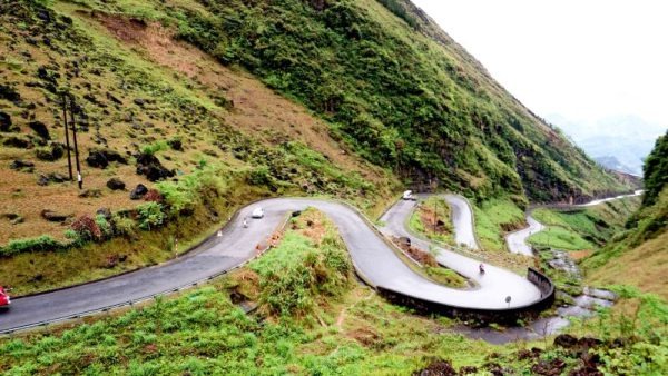 Travel along winding mountain roads, passing Thai An Pass with breathtaking views of the clear blue river below.